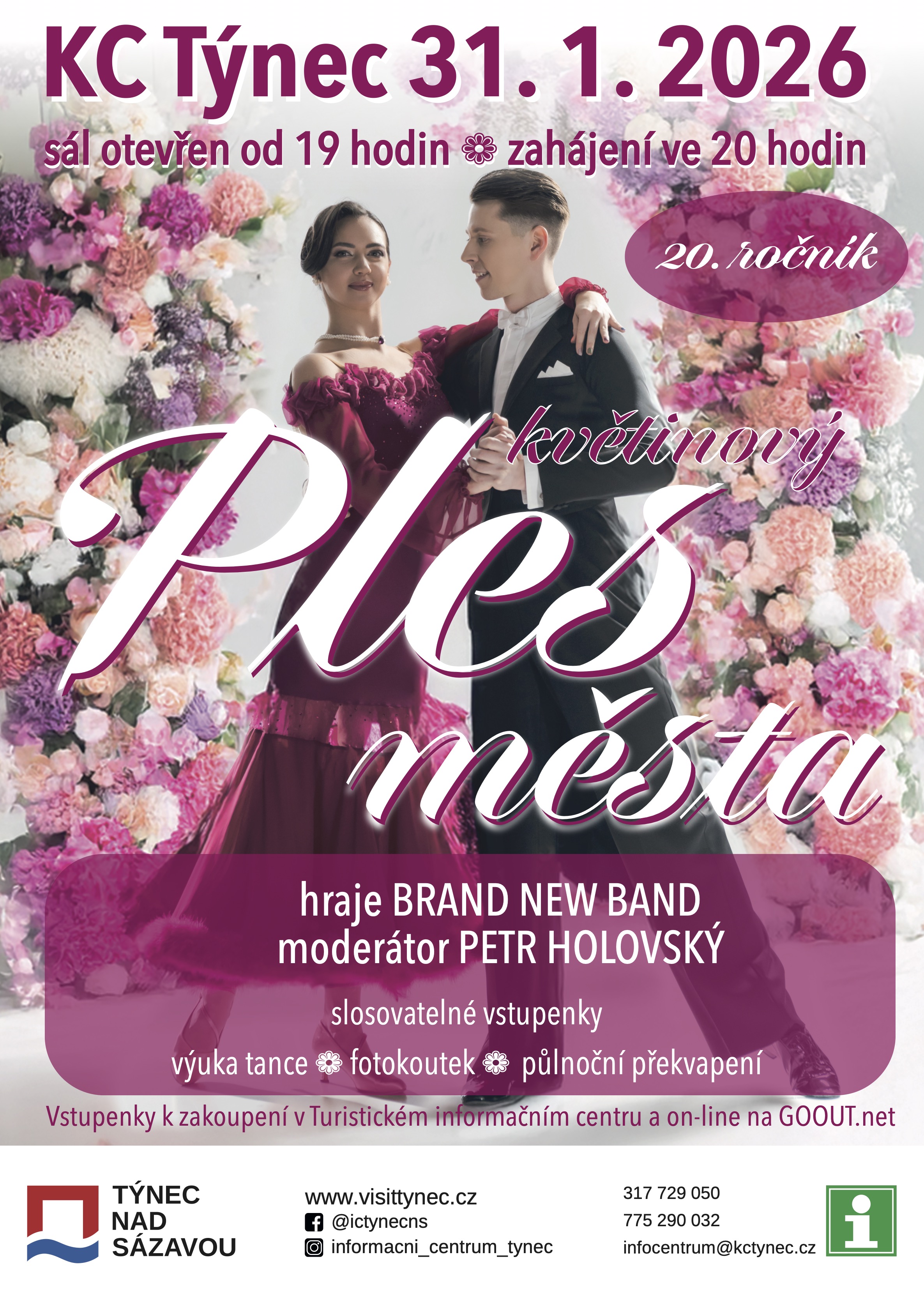 Zveme vás na jubilejní 20. Ples města Týnec v květinovém stylu – nezapomenutelný ples plný elegance, krásy a tance!