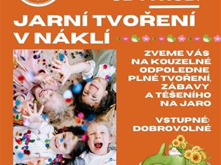 Zveme děti i rodiče na jarní tvoření v Náklí. Čeká vás pohodové odppoledne plné kreativních dílen, zábavyy a společného tvoření s jarní tematikou. Akce je určená především rodinám s dětmi.