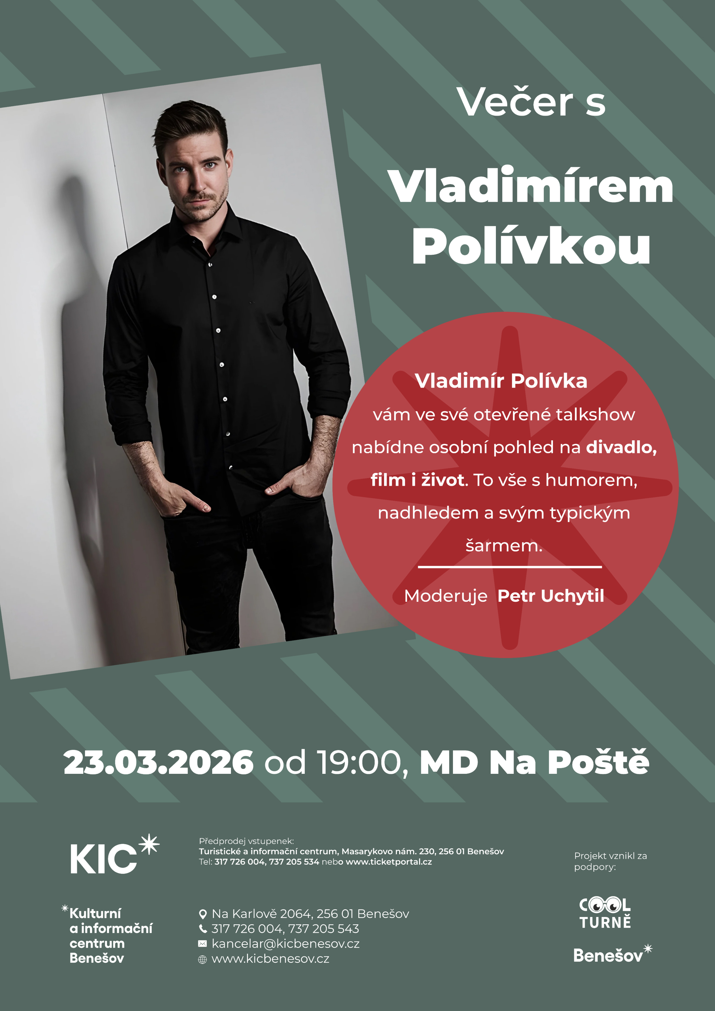 Přijďte na setkání s jednou z nejvýraznějších tváří současné české herecké scény. Vladimír Polívka vás v otevřené talkshow provede svým světem – od divadelních prken Národního divadla přes filmové ateliéry až po osobní zážitky, které ho formovaly.