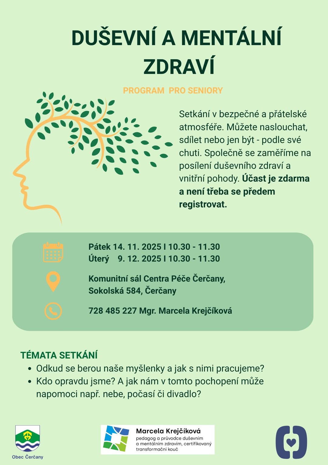 Přijďte si s námi popovídat (nebo jen pobýt) o tom, jak pečovat o svou mysl, jak rozumět vlastním myšlenkám a kde brát sílu pro každý den.