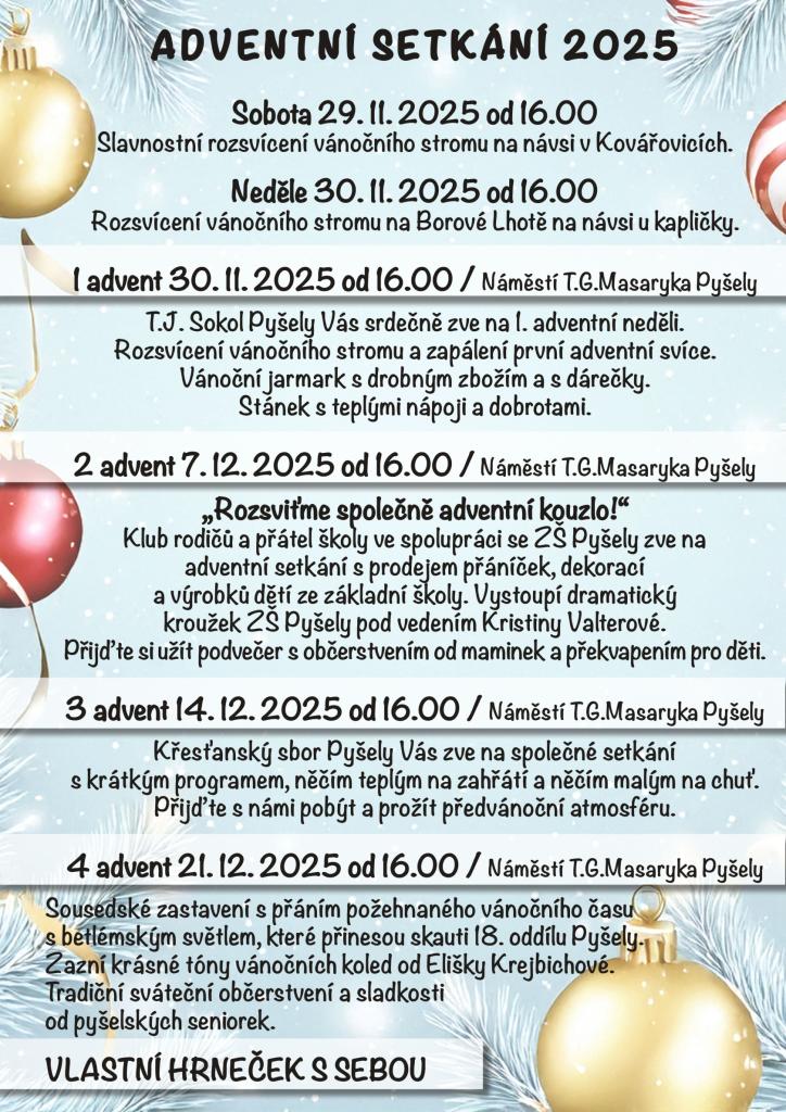 | 30.11.2025 16:00 | První advetní setkání na náměstí v Pyšelích |