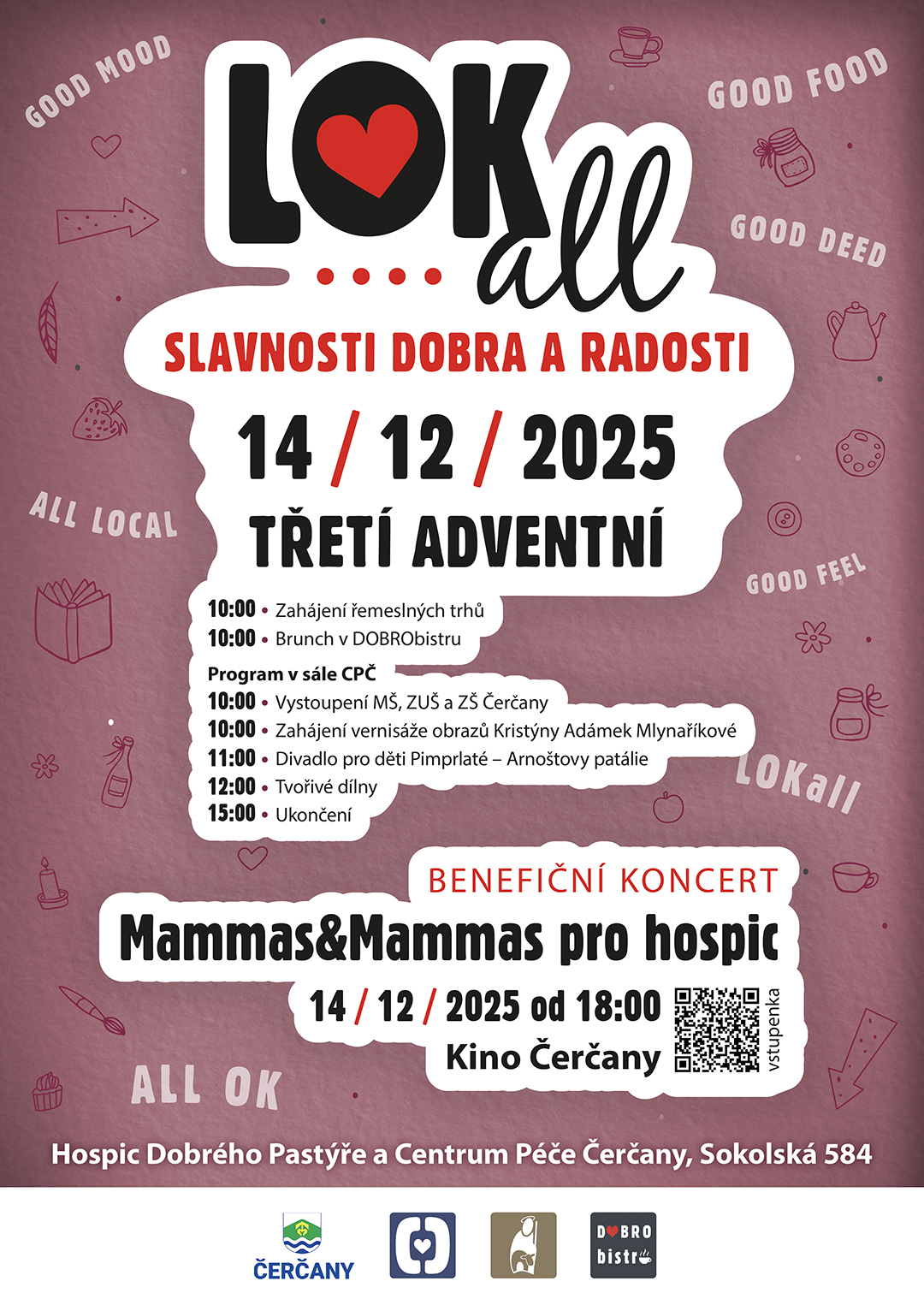 Trhy startují již dopoledne od 10:00 a jejich součástí jsou i kreativní dílničky. Na oběd můžete zavítat do DOBRObistra a dále plynule následovat program. Budete-li chtít, můžete přijít na odpolední kávu, slavnosti trvají až do 15:00 hodin.