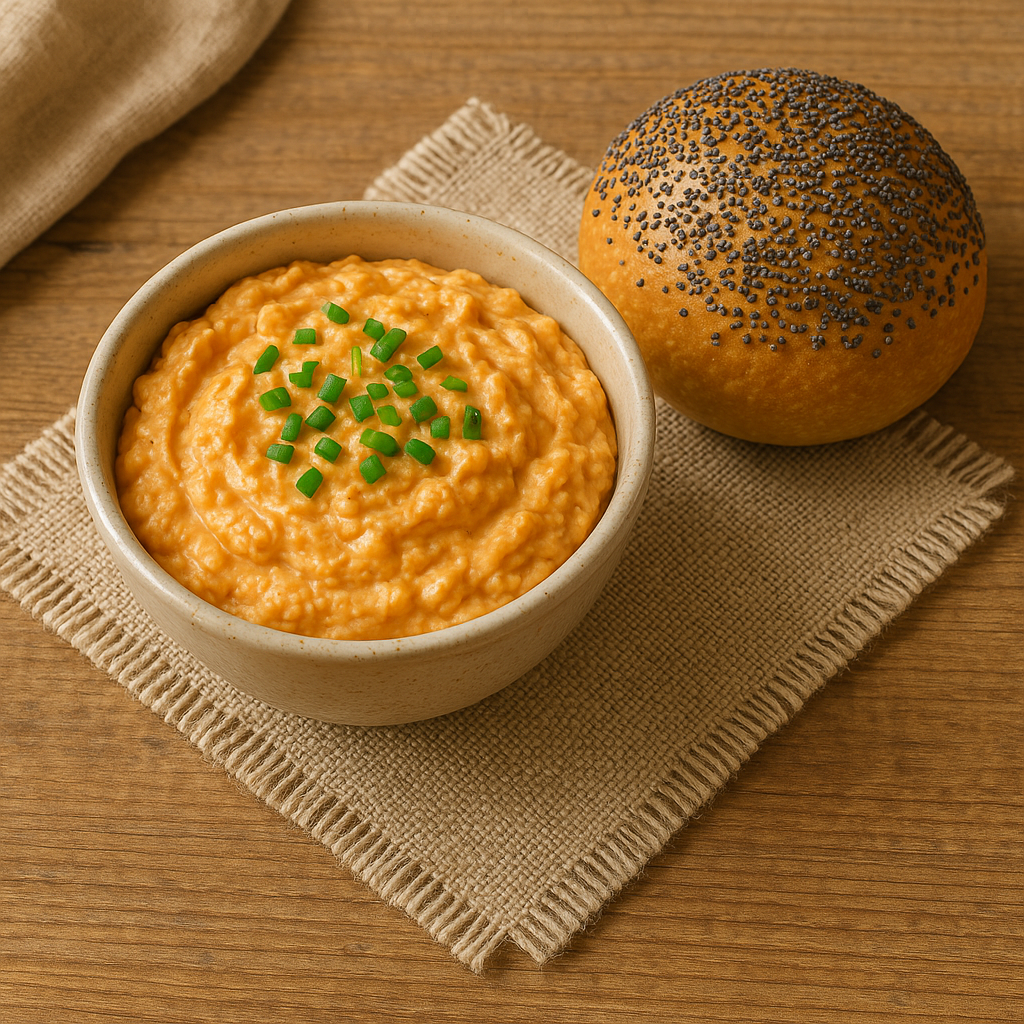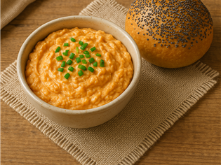 • Bavorská sýrová pomazánka s pivem „obatzda“ s čerstvým pečivem